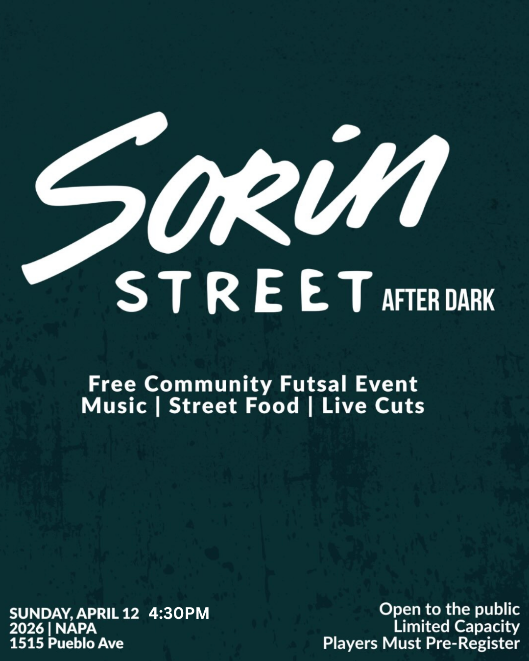 Free community street-style futsal. Music. Local vendors.