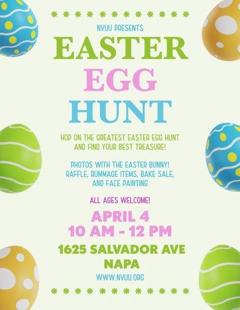Address: Napa Valley Unitarian Univeralists, 1626 Salvador Ave, Napa, CA 94558